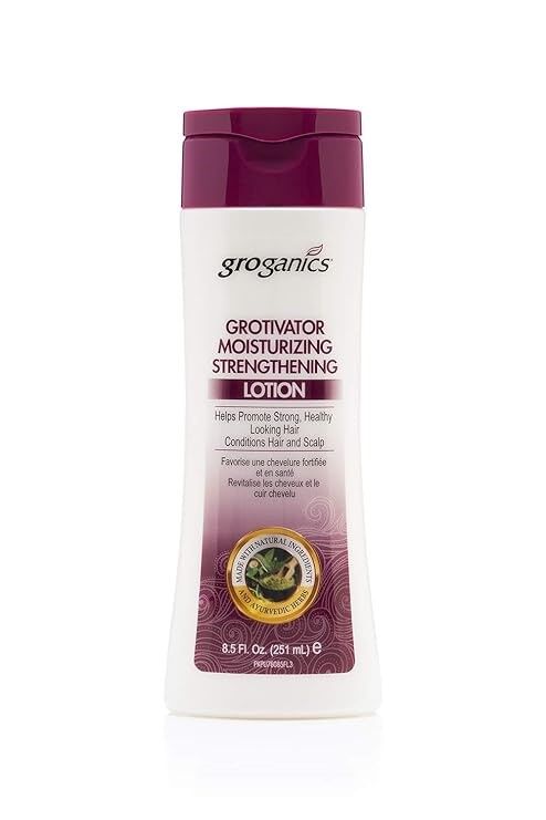 - Good Hair Day Everyday, Is it possible? Absolutely! Groganics – Grotivator Moisturizing Strengthening Lotion instantly nourishes and conditions for stronger and fuller-looking hair. Enriched with phytonutrients and Ayurvedic herbs for breakage resistance